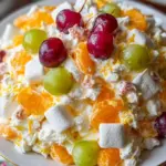 Ambrosia Salad is a dish that transcends the boundaries of mere food; it tells a story of togetherness, of shared laughter, and of memorable occasions. Each ingredient brings its own unique touch, from the juicy burst of grapes to the delightful slight tang of sour cream mingling with sweetness to create a harmonious blend. Whether served as a refreshing side at a BBQ or a crowd-pleasing dessert at a birthday celebration, this salad never fails to elicit smiles and empty bowls. Once you discover the joy of creating this light and fruity delight, you’ll realize that it deserves a cherished spot at your table, any day of the year.