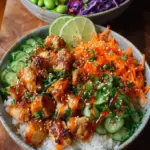 It doesn’t take much to transport yourself to a lively food market bustling with vibrancy. Picture the sound of laughter, sizzling pans, and served dishes brimming with freshness. That’s precisely the joy you find in every bite of this Bang Bang Chicken Bowl. Its layers invite you to explore, from the satisfying crunch of cucumbers and carrots to the tender juiciness of perfectly cooked chicken, all beautifully enveloped in that luscious bang bang sauce. In just one bite, you encounter a melody of flavors—savory, spicy, sweet—all beckoning you to savor each moment.