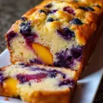 A delightful loaf featuring the sweet combination of blueberries and peaches, perfect for brunch or as a snack.
