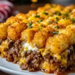 Imagine lifting a forkful of this delightful casserole, where gooey cheese stretches deliciously with each pull, and the crispy tater tots provide the perfect contrast to the creamy interior. The melding of textures dances on your palate—one minute you enjoy the crunchy exterior, the next you sink into the comforting embrace of savory beef and smooth sauce. It’s a dish perfect for any occasion, whether it’s a cozy family dinner or a lively potluck with friends, and you can’t help but feel a surge of warmth with each mouthful. This recipe will fast become a beloved staple, leaving everyone at the table asking for seconds.