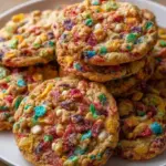 Vibrant and nostalgic Fruity Pebbles Cookies that combine buttery richness with a delightful crunch.