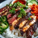 The thrill of creating these Irresistibly Easy Korean BBQ Steak Rice Bowls beckons. With each bite, you’ll immerse yourself in rich flavors harmonizing beautifully with the vibrant textures of fresh vegetables and a spicy cream sauce that ties everything together. Escape the everyday and craft a delicious meal that invites you to indulge your senses. Once you try this delightful recipe, it will undoubtedly become a go-to for gatherings and family dinners alike. Prepare to relish every moment and make lasting memories around the table!