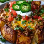 Each forkful of the Loaded Fiesta Potato Bowl unfolds a fiesta of flavors, textures, and pure joy. Imagine sinking your teeth into crispy russet potatoes that have a golden-brown crust flecked with spices. The moment you break through the crunchy exterior, a warm, fluffy interior invites you in—it’s comforting and oh-so-satisfying. Pile on seasoned ground beef or hearty black beans, and a melty shower of shredded cheese that blankets the bowl like a cozy hug. Each bite is a perfect harmony of savory, creamy, and spicy notes, tantalizing your taste buds and warming your heart.
