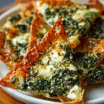 Delightful Mediterranean crisps filled with savory spinach and creamy feta, enveloped in flaky phyllo dough.