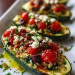 Delicious Mediterranean stuffed zucchinis filled with quinoa, vegetables, and feta, offering a harmonious blend of flavors and textures.