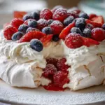 A delightful and airy dessert featuring a crisp meringue, fluffy whipped cream, and vibrant fresh berries, perfect for celebrating Mother’s Day.
