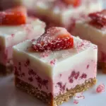 Moreover, they’re incredibly versatile. Whether you are celebrating a birthday, hosting a picnic, or simply indulging your sweet tooth on a quiet evening, these squares make for the perfect dessert. Their stunning blush color and delightful presentation make them an inviting centerpiece for any occasion, sure to impress friends and family alike. So why wait? Treat yourself to a luscious experience that captures the essence of summer in every bite!