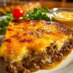 A delightful hybrid between a cheeseburger and a savory pie, filled with seasoned beef, cheese, and onions, all encased in a flaky crust.