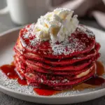 Red-Velvet Pancakes are a delicious and visually stunning breakfast treat, perfect for special occasions or a sweet indulgence.