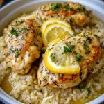 A heartwarming dish of tender chicken breasts and fluffy rice infused with lemon and aromatic herbs, perfect for cozy family gatherings.