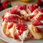 A delightful crescent ring filled with creamy cheese, fresh strawberries, and zesty lemon, perfect for brunch or dessert.