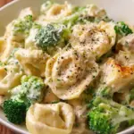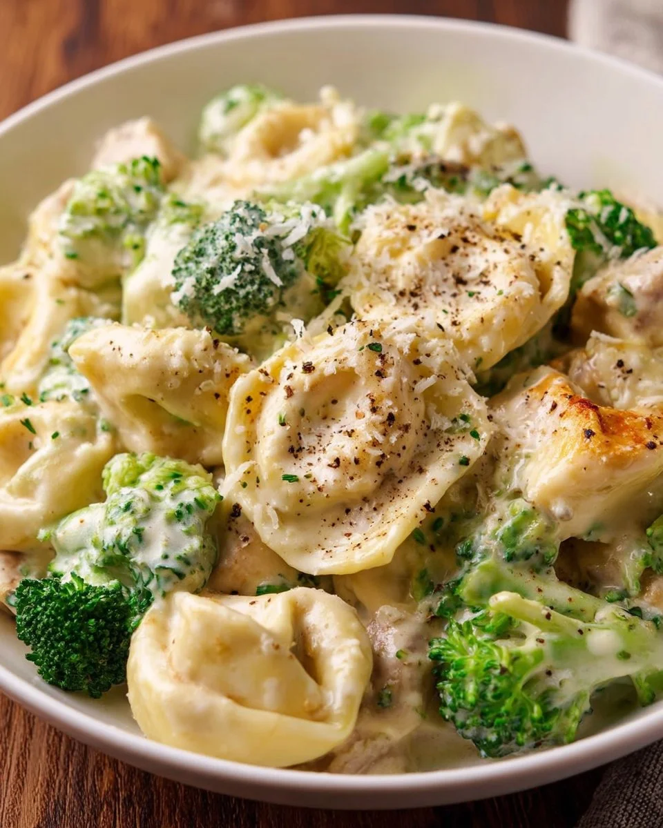 A creamy and comforting Tortellini Alfredo dish with garlic, Parmesan, and broccoli that captures the essence of Italian cuisine.